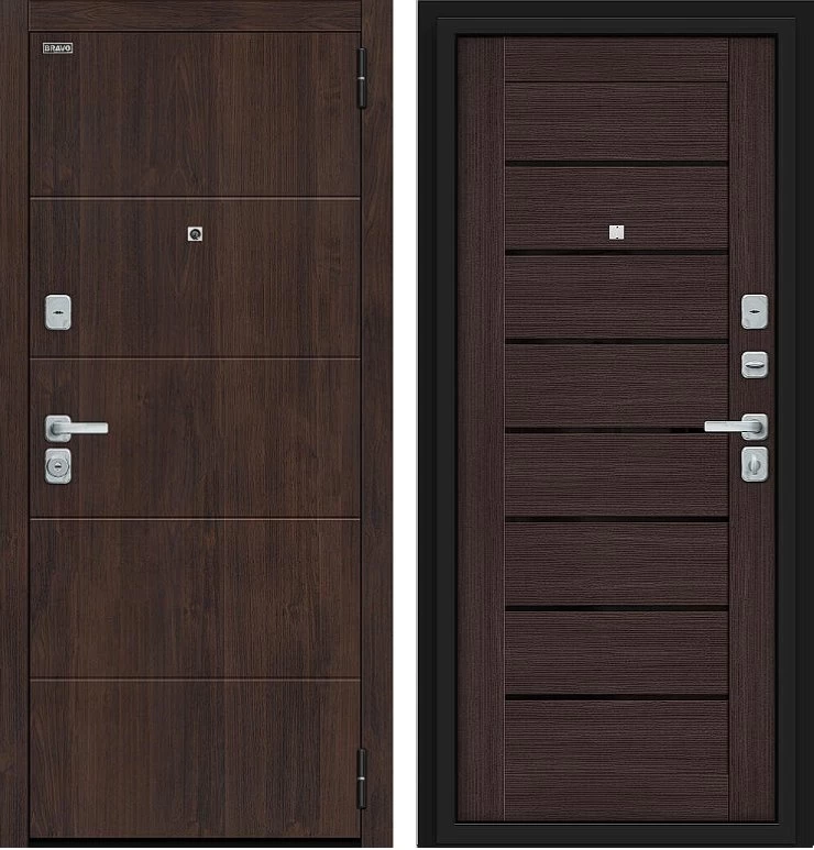 Надежная входная Дверь Браво Прайм/BChrome Almon/Wenge Melinga премиум класса по цене 39 435 руб. Большая толщина стали защитит от проникновения в ваш дом, квартиру или коттедж. Используется очень качественная фурнитура: замки, цилиндры, ручки, защелки. Покрытие и отделка двери изготовлено под внимательным контролем производителя. Дверь имеет долгий срок службы и гарантию.