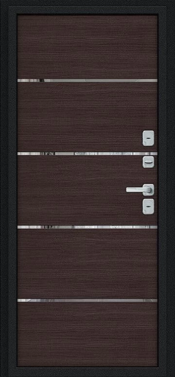 Надежная входная Дверь Браво Thermo Лайн/BChrome Букле черное/Wenge Melinga премиум класса по цене 46 635 руб. Большая толщина стали защитит от проникновения в ваш дом, квартиру или коттедж. Используется очень качественная фурнитура: замки, цилиндры, ручки, защелки. Покрытие и отделка двери изготовлено под внимательным контролем производителя. Дверь имеет долгий срок службы и гарантию.